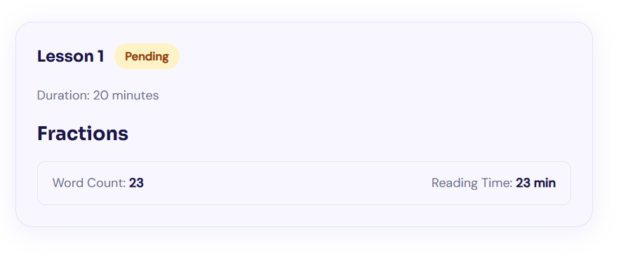 - Lesson Stats — word count, reading time